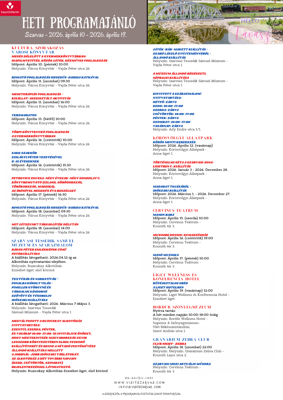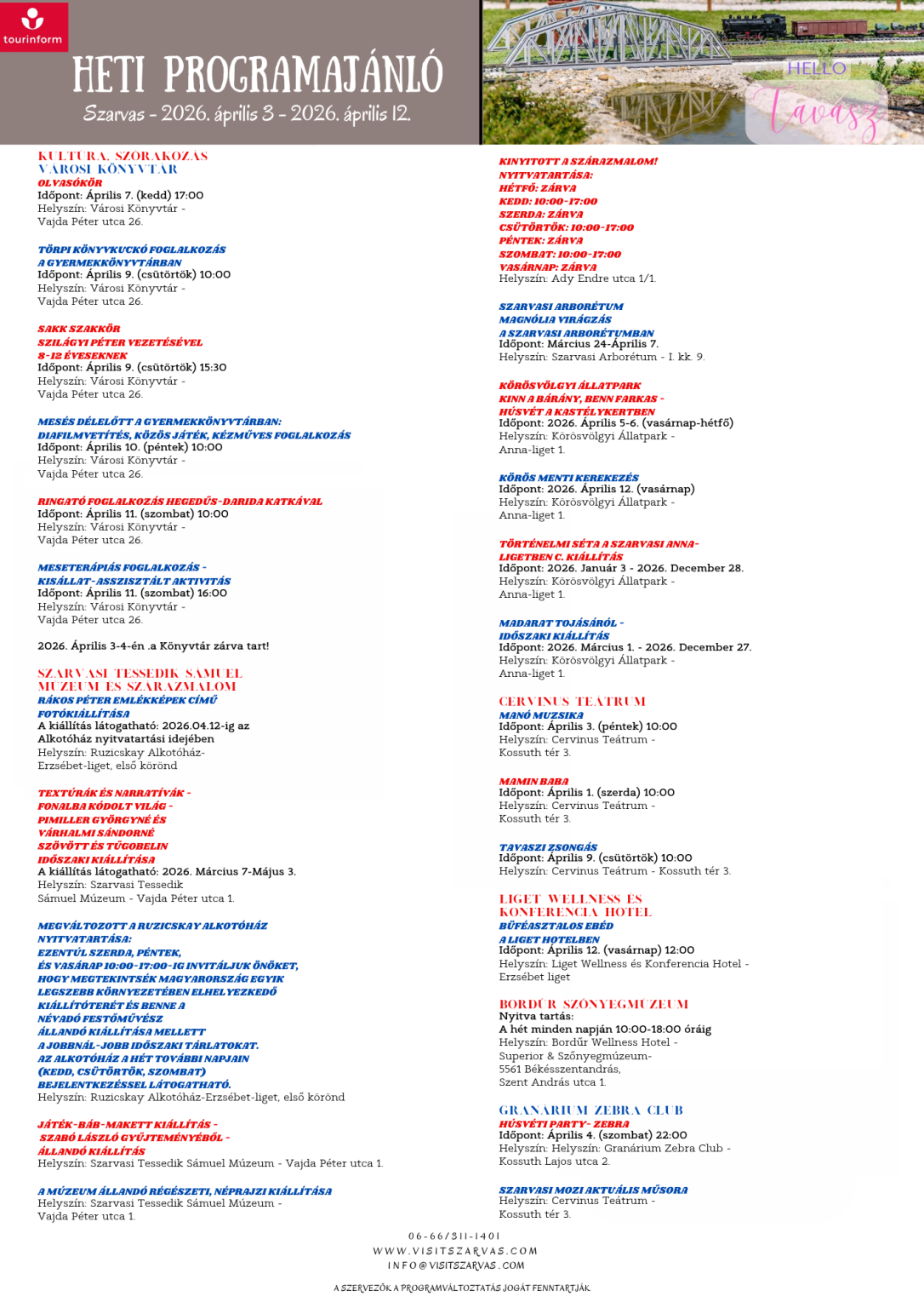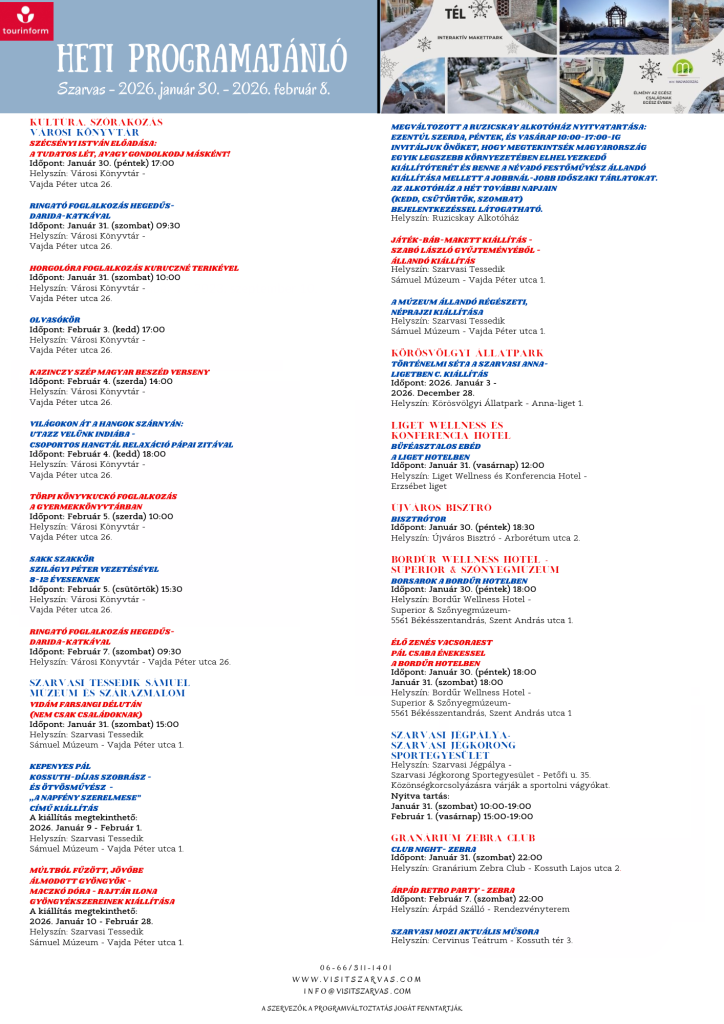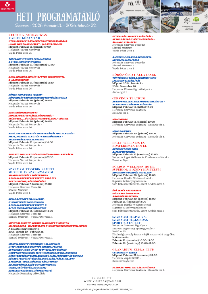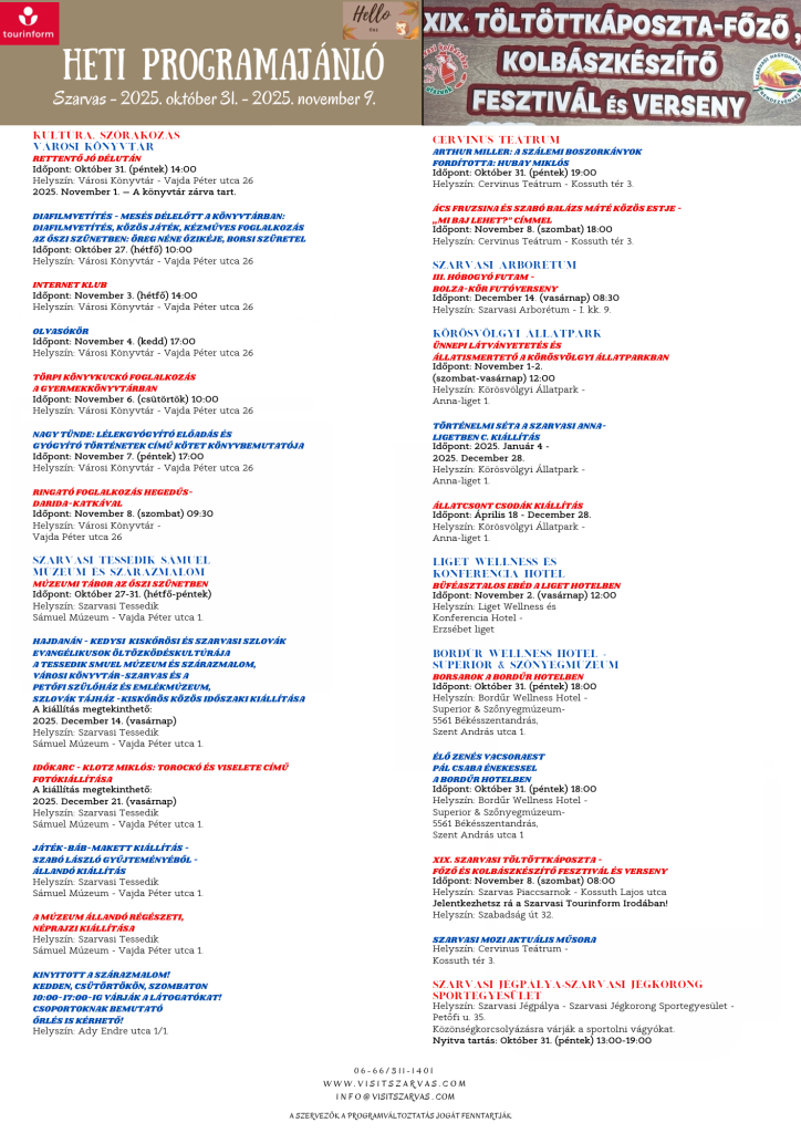 Az alábbi eseménynaptár tartalmazza a Szarvas városában és környékén található programokat és eseményeket.