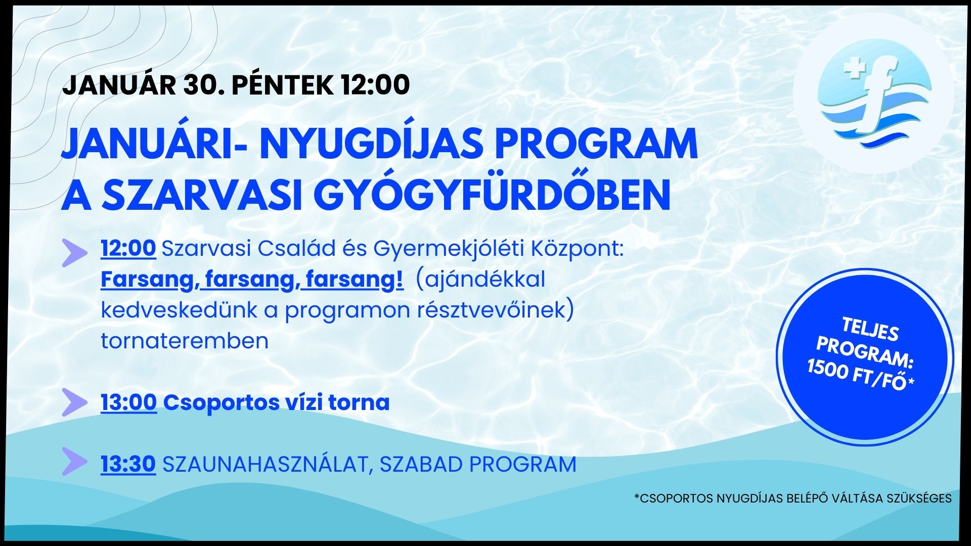 Home Eseménytár Januári Nyugdíjas Program a Szarvasi Gyógyfürdőben! Januári Nyugdíjas Program a Szarvasi Gyógyfürdőben! + Google Naptárba mentés + iCal / Outlook export dátum 2026.jan.30. MÁR BEFEJEZŐDÖTT! időpont 12:00 - 13:30 Résztvételi díj 1.500HUF helyszín Szent Klára Gyógyfürdő 5540, Szarvas Kossuth Lajos u. 23 Kategória Programok Te is megosztanád?
