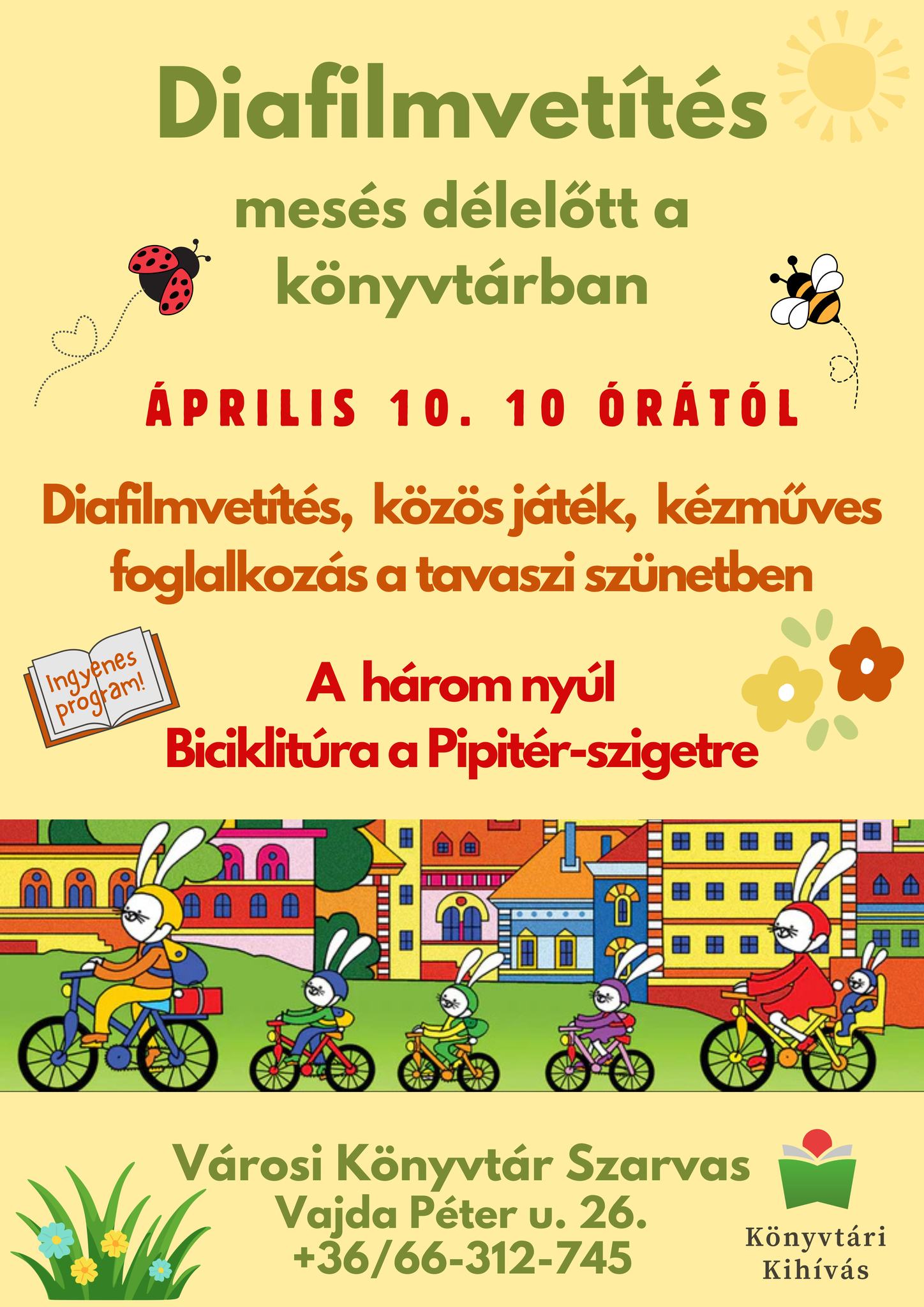 Szeretettel várjuk a kisgyermekes családokat a tavaszi szünet utolsó napján egy vidám, mesés délelőttre!
