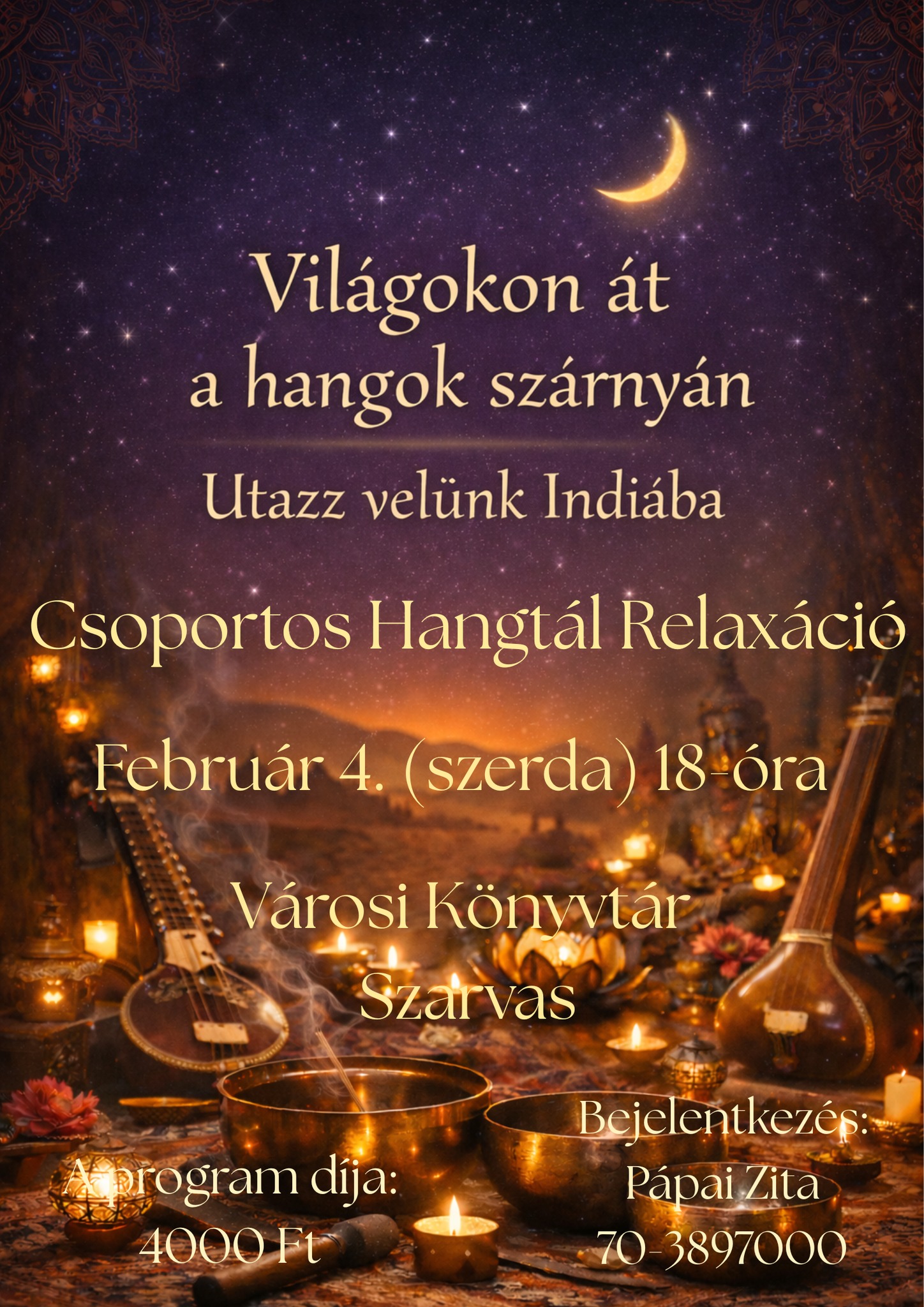 Home Eseménytár Világokon át a hangok szárnyán Világokon át a hangok szárnyán + Google Naptárba mentés + iCal / Outlook export dátum 2026.febr.04. MÁR BEFEJEZŐDÖTT! időpont 18:00 - 20:00 Résztvételi díj 4.000HUF helyszín Városi Könyvtár 5540 Szarvas, Vajda Péter utca 26. Kategória Programok Te is megosztanád?